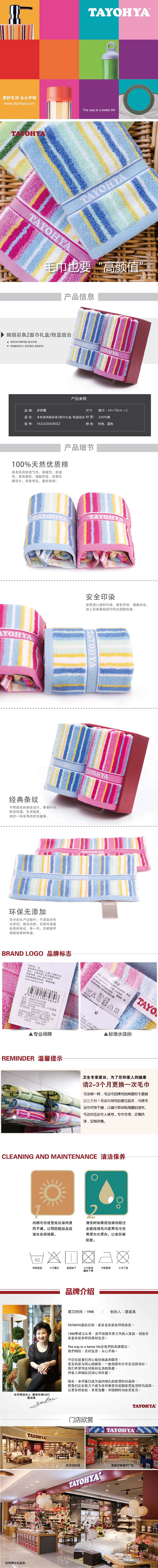 多样屋 绚丽彩条2面巾礼盒粉蓝组合T