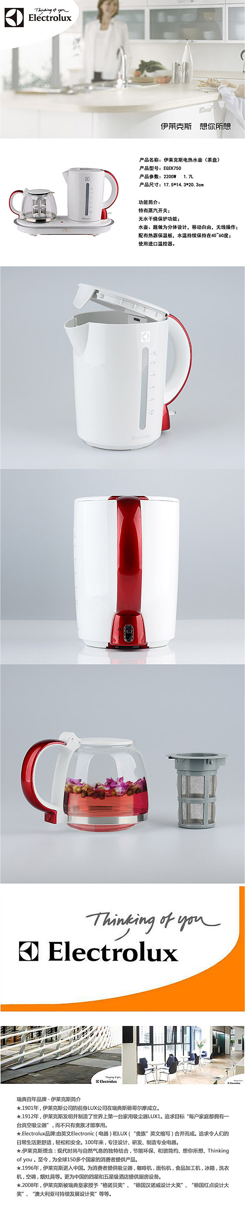 伊莱克斯 电热水壶(带茶盘)EGEK